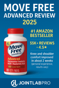 Move Free Advanced review 2025 — Over the last year I tested more than 20 joint supplements. One of the most visible on Amazon USA is Move Free Advanced, combining glucosamine, chondroitin, MSM and hyaluronic acid in just 2 tablets per day. Below you’ll find a snapshot of the current Amazon data, what’s actually in the bottle, my 30-day notes, and who this formula may (and may not) be right for.
